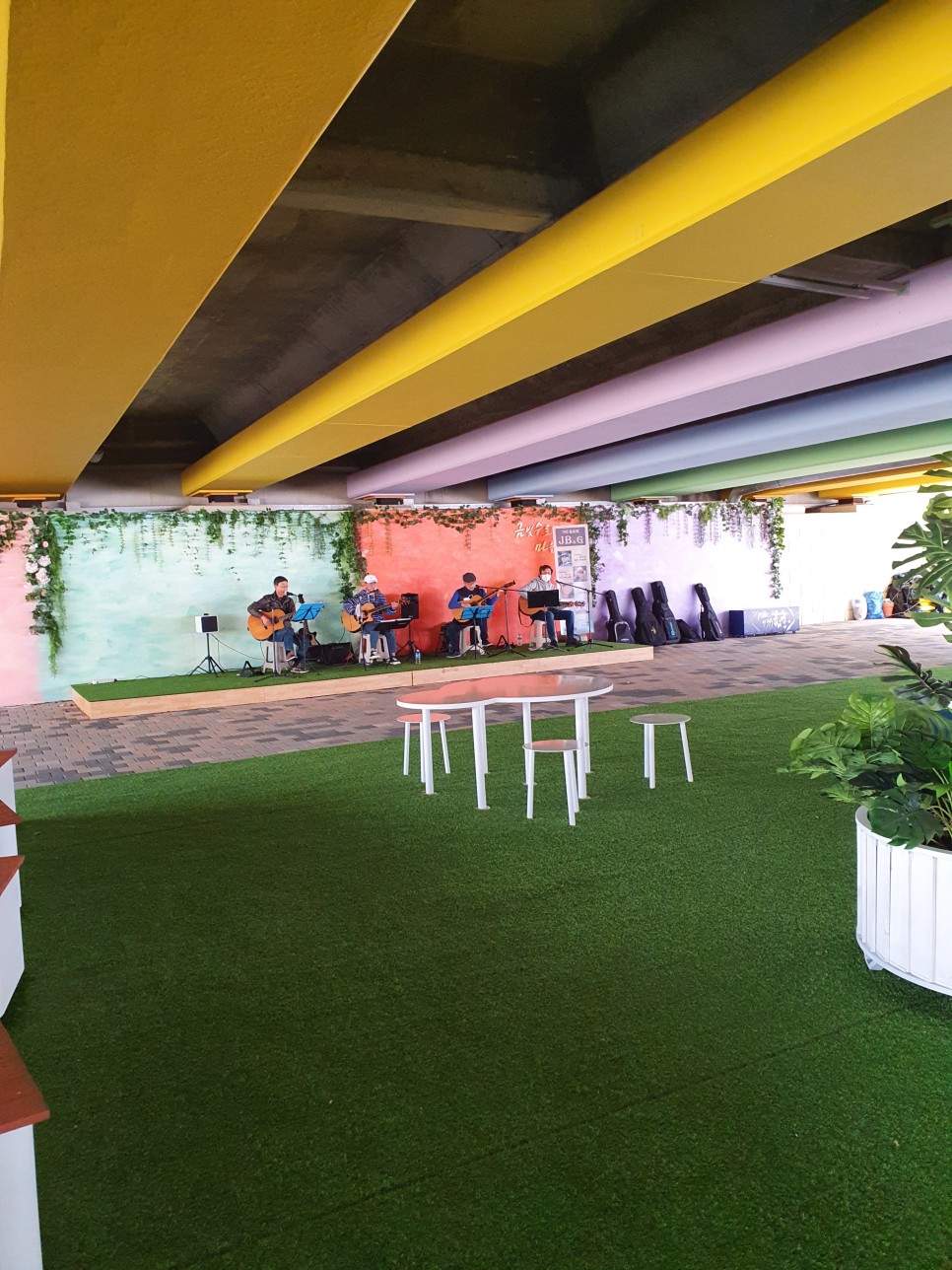 다리 밑에서는 길거리 음악가들이